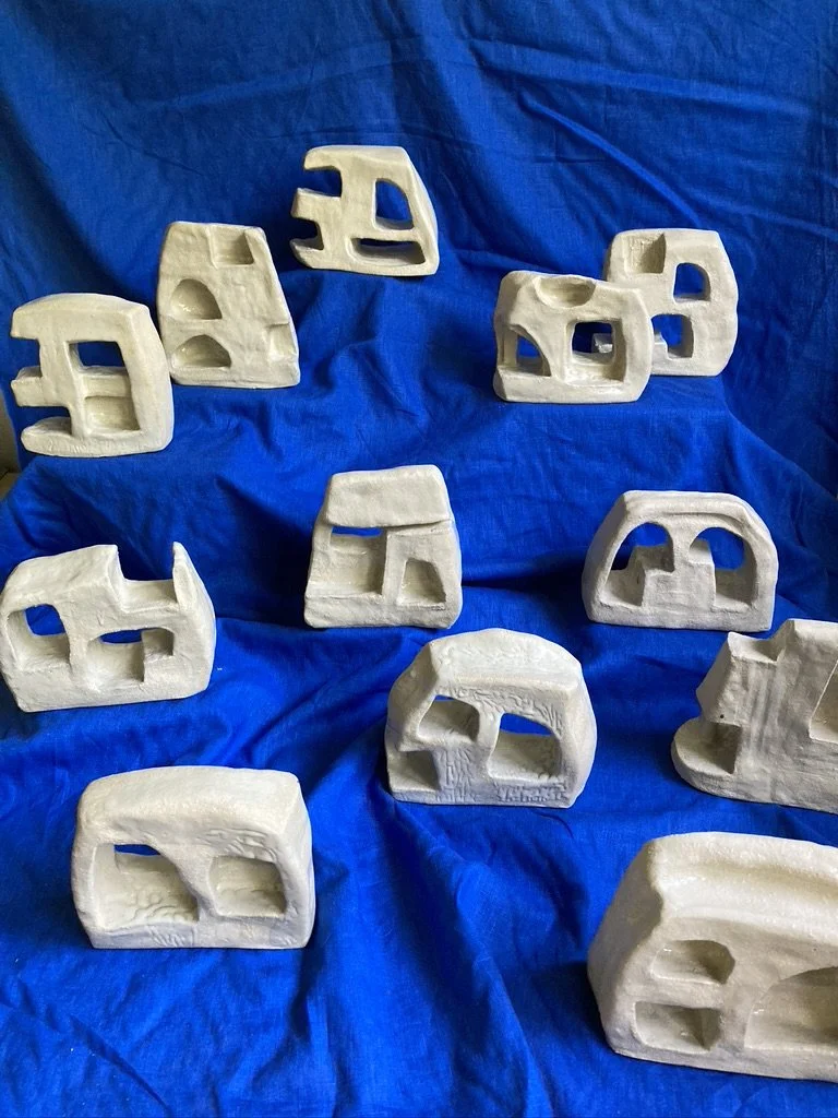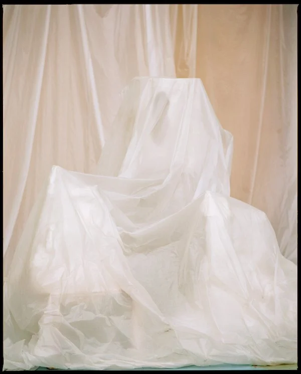 Côme De Bouchony who is part of the image making duo AB/CB with the photographer Anaïs Barrelli, suggested to meet and experiment freely with photography, art direction, set design and sculpture. The energy of the natural environment surrounding the industrial building where the studio is located inspired us to work with what was already there. The sculptures evolve in surroundings that seem familiar even natural for them. There is a dialogue between clay and the sun-bathed stone, abstract shapes appear on a smooth pleated backdrop in a minimalist industrial setting. They just belong.