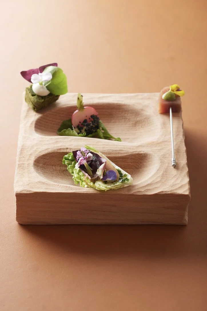 For each of the four seasons, I created a series of sculptural objects to infuse poetry into the opening chapter of the menu: the appetizers. Drawing inspiration primarily from the natural cycles, my aim was to challenge traditional norms and create space for emotions and wonder. The organic forms of my pieces invite chefs to adapt, respond, and contribute to the unfolding narrative. Together, we offer a tactile experience on the table, to connect through the senses before reason intervenes. This collaboration holds a special place for me as it encapsulates what I aspire to in my practice. A space Wwere what is created holds as much significance as the surrounding process, where intentions align, offering ample creative freedom.